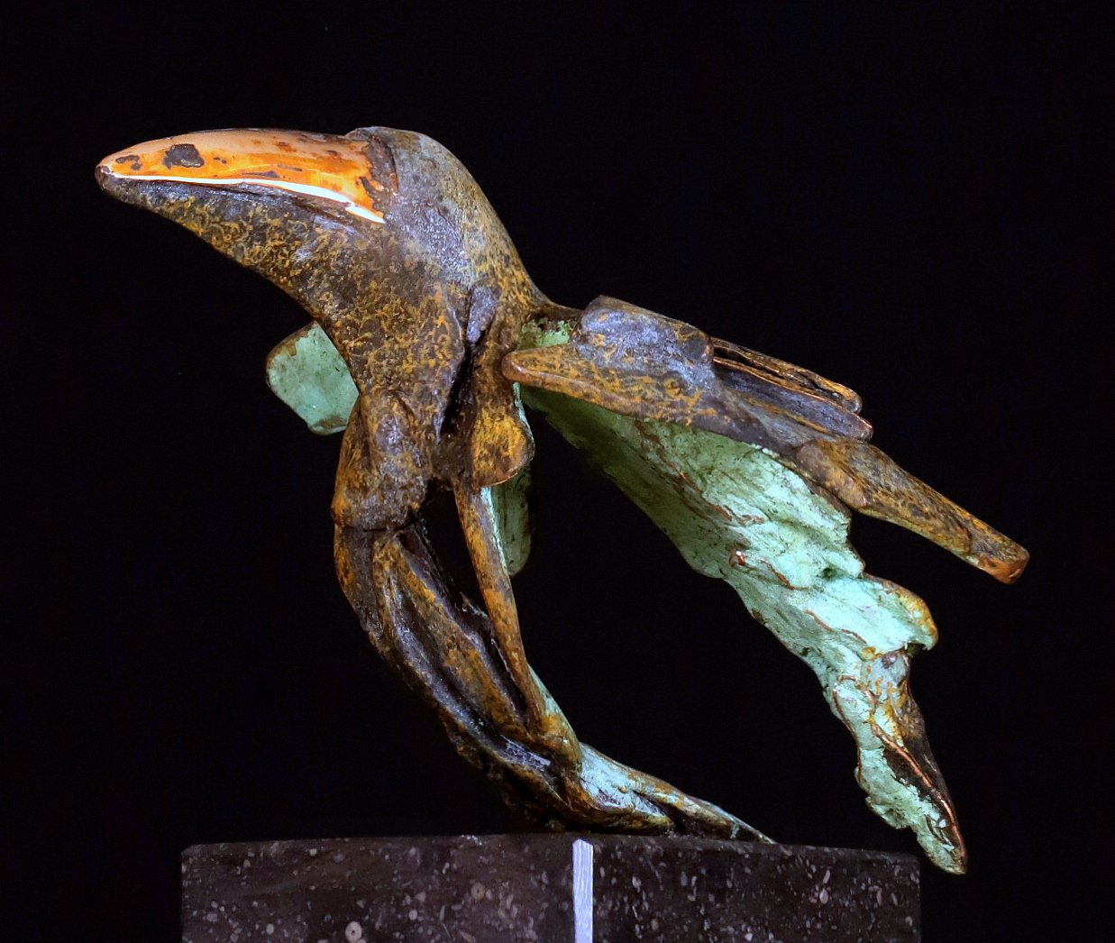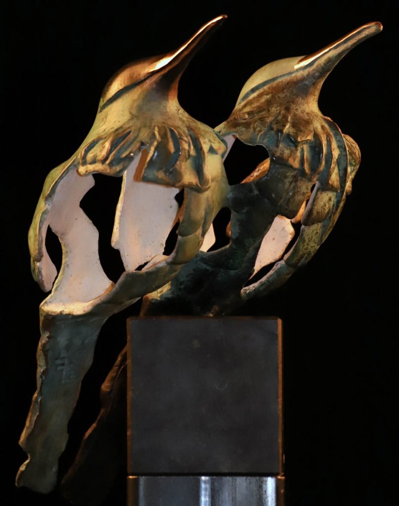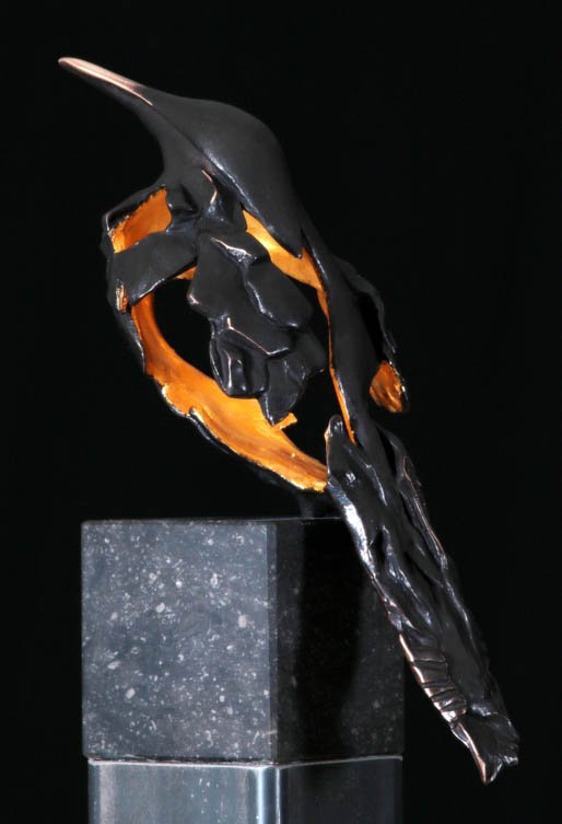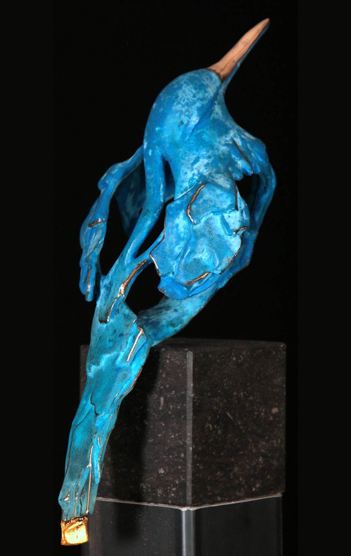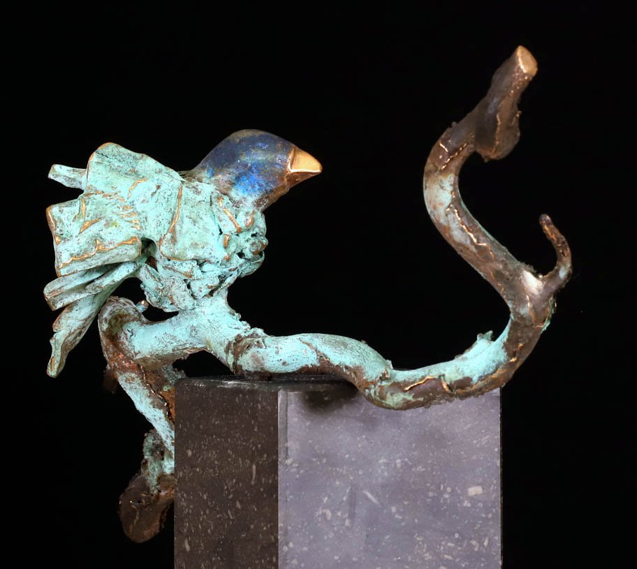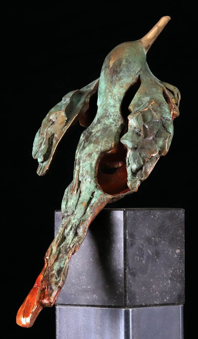is de guitige in brons gevatte vlieger die de omgeving gadeslaat.